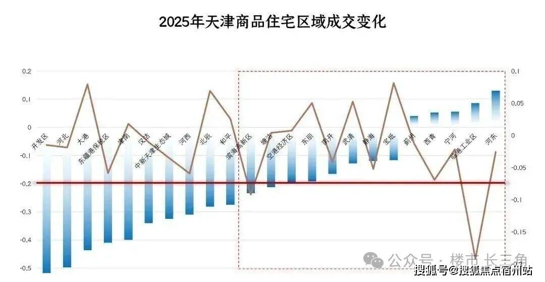 虽然2025年成交均价微降0.2%看似不多,但区域分化特别严重。2026年1月数据更直观:武清区新房价格环比跌了9.37%,红桥区跌了5.57%,蓟州、宁河等区域也有不同程度下跌,只有河西、河东等少数区域微涨。